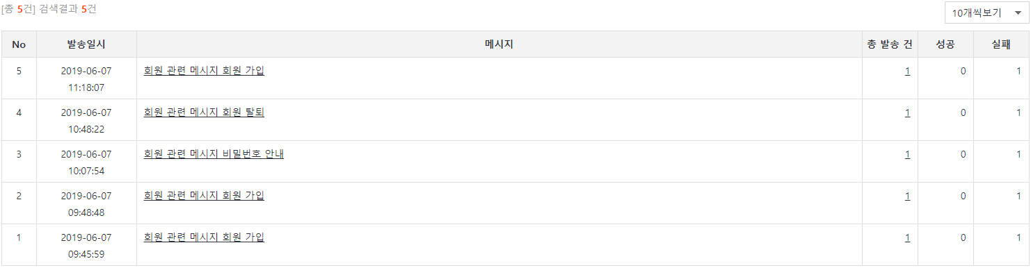 - 메시지 발송성공, 발송실패 여부를 확인할 수 있습니다.