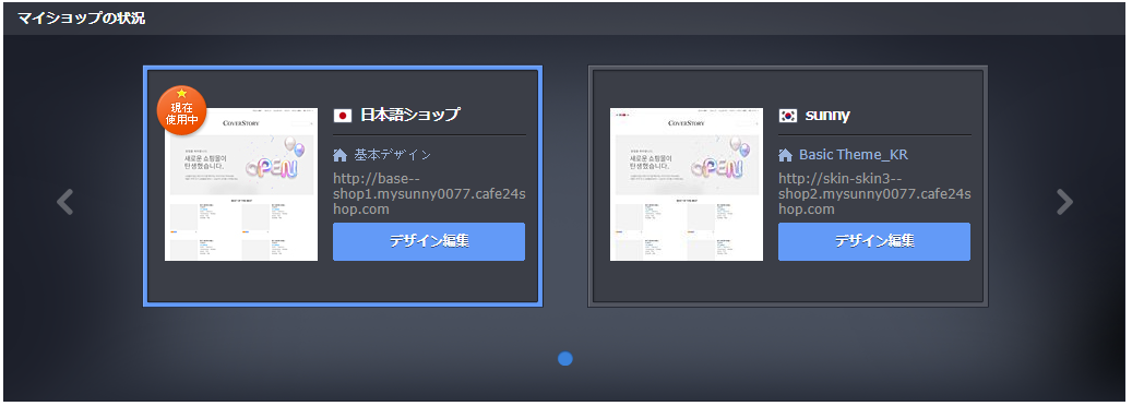 各越境ECショップのメインデザイン情報を一目で確認できます。