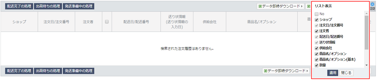 If you tick the checkbox for [Display shipping information], customer information will be displayed in the search results table.