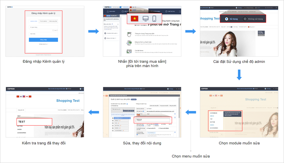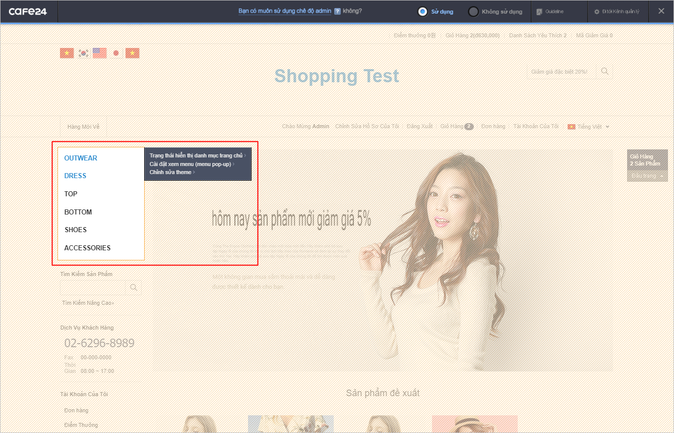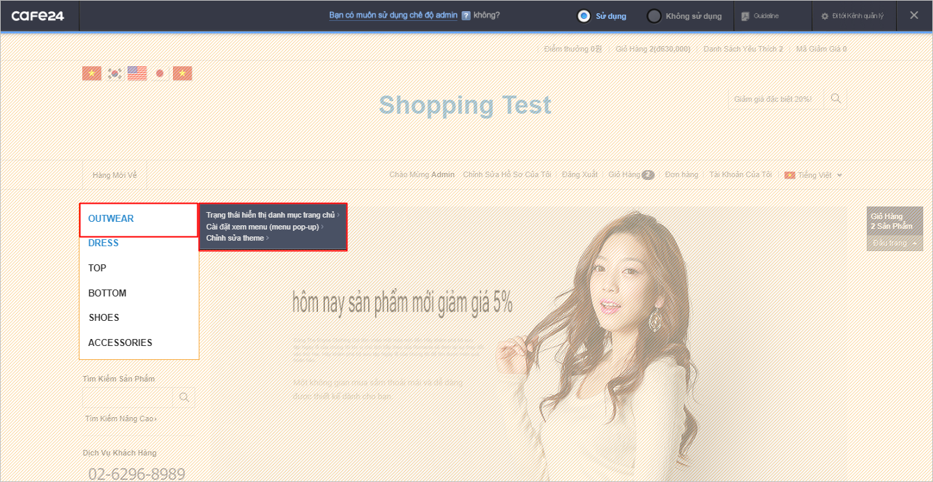 4) Trực tiếp sửa theme tại giao diện trang mua sắm.