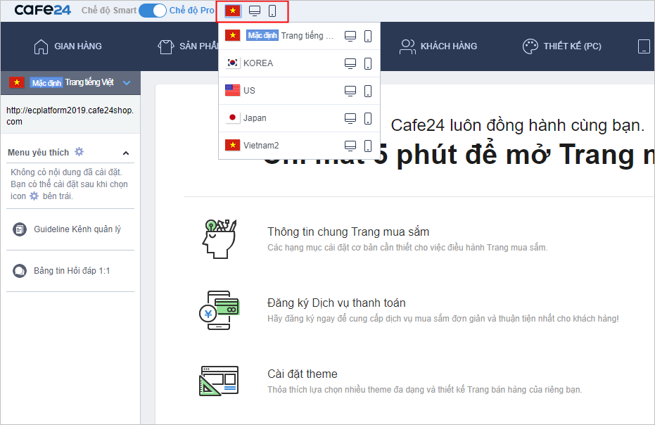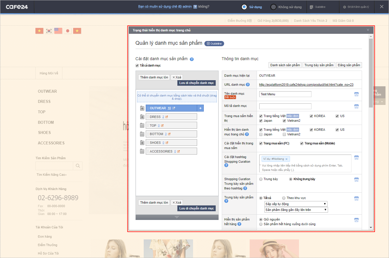 Đây là tính năng mà bạn có thể vận hành và quản lý trang mua sắm dễ dàng hơn bằng cách trực tiếp quản lý tại giao diện trang mua sắm theo cài đặt tính năng của admin.